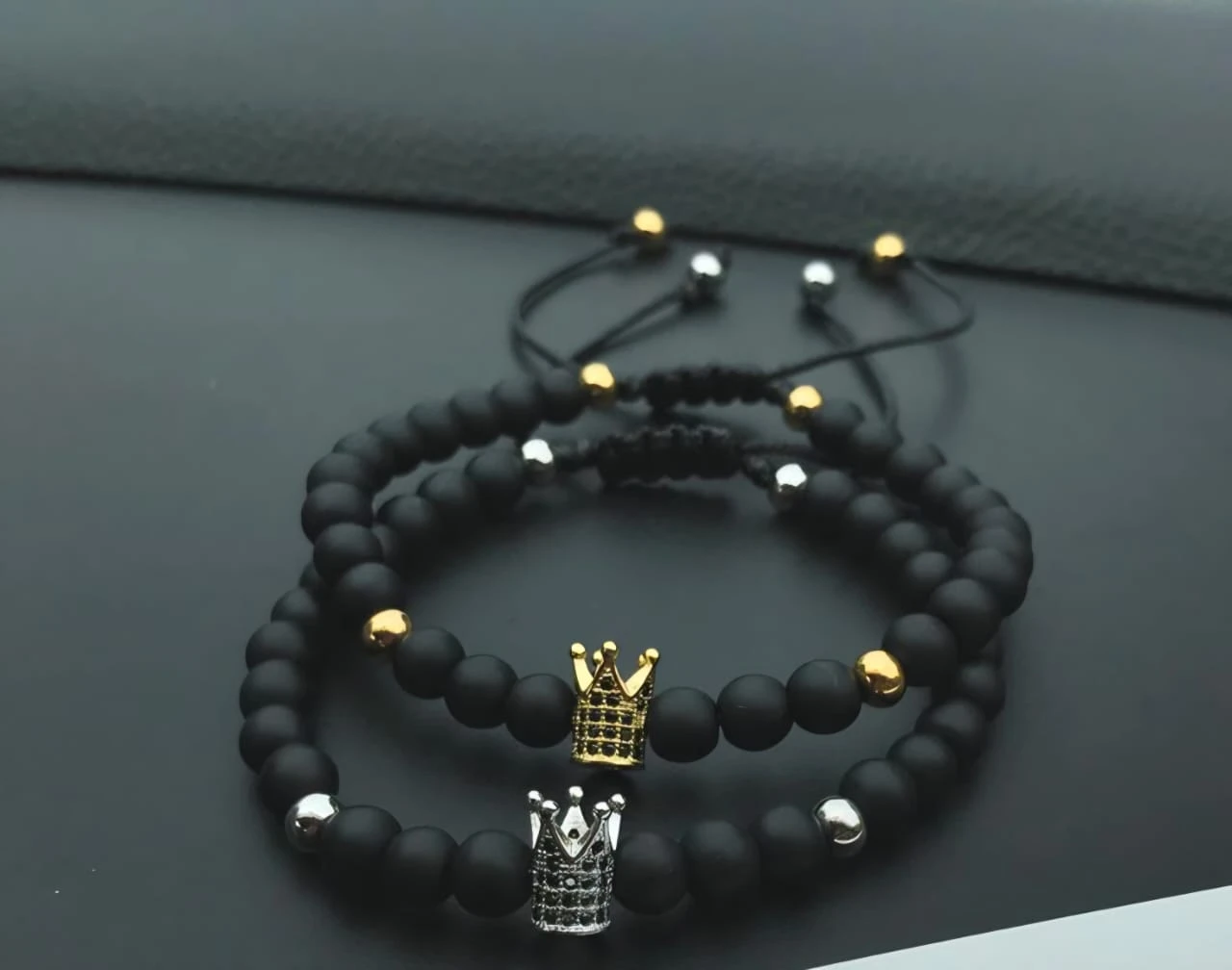 برسليت من حجر الاونكس المط وفواصل الهيماتيت وتاج من فواصل الزركون