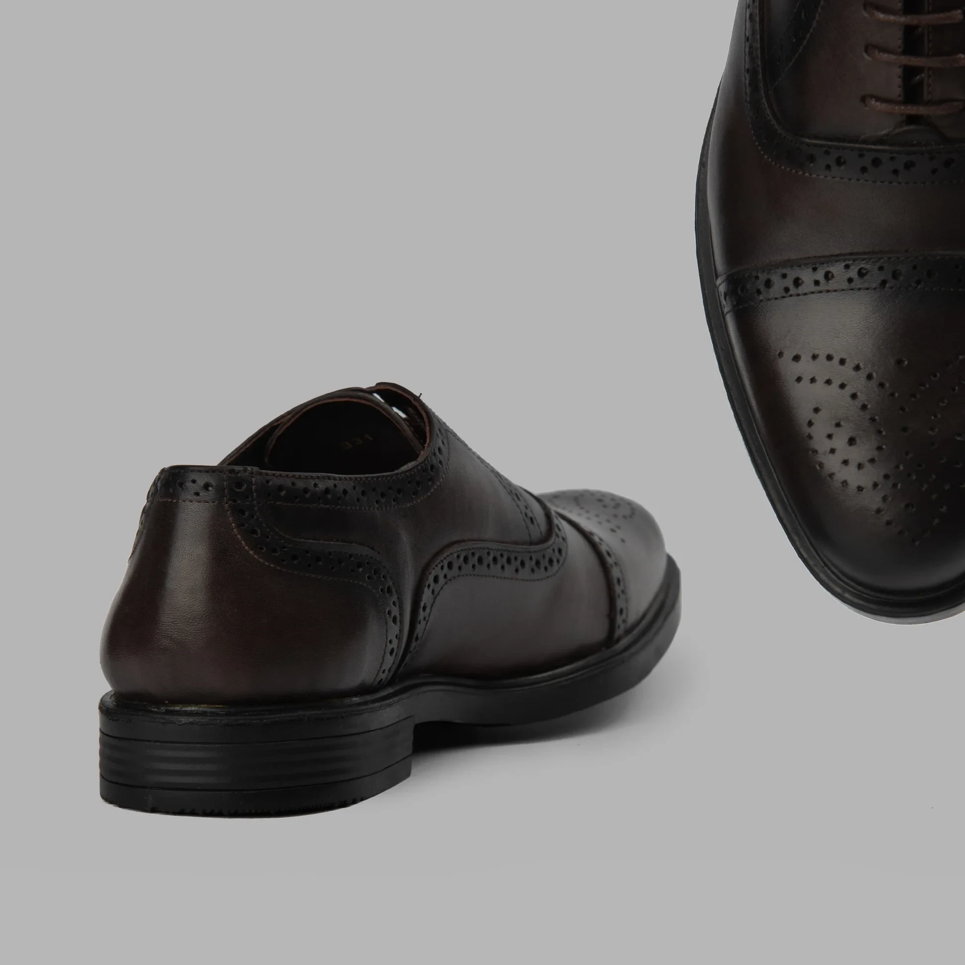 Our BRIO Genuine Leather Oxford Moc Toe Semi Brogue Shoes are the perfect combination of classic formal style and luxury. Made with genuine leather and a classic Oxford design, these impressive brown shoes will be sure to make you stand out for any occasion.