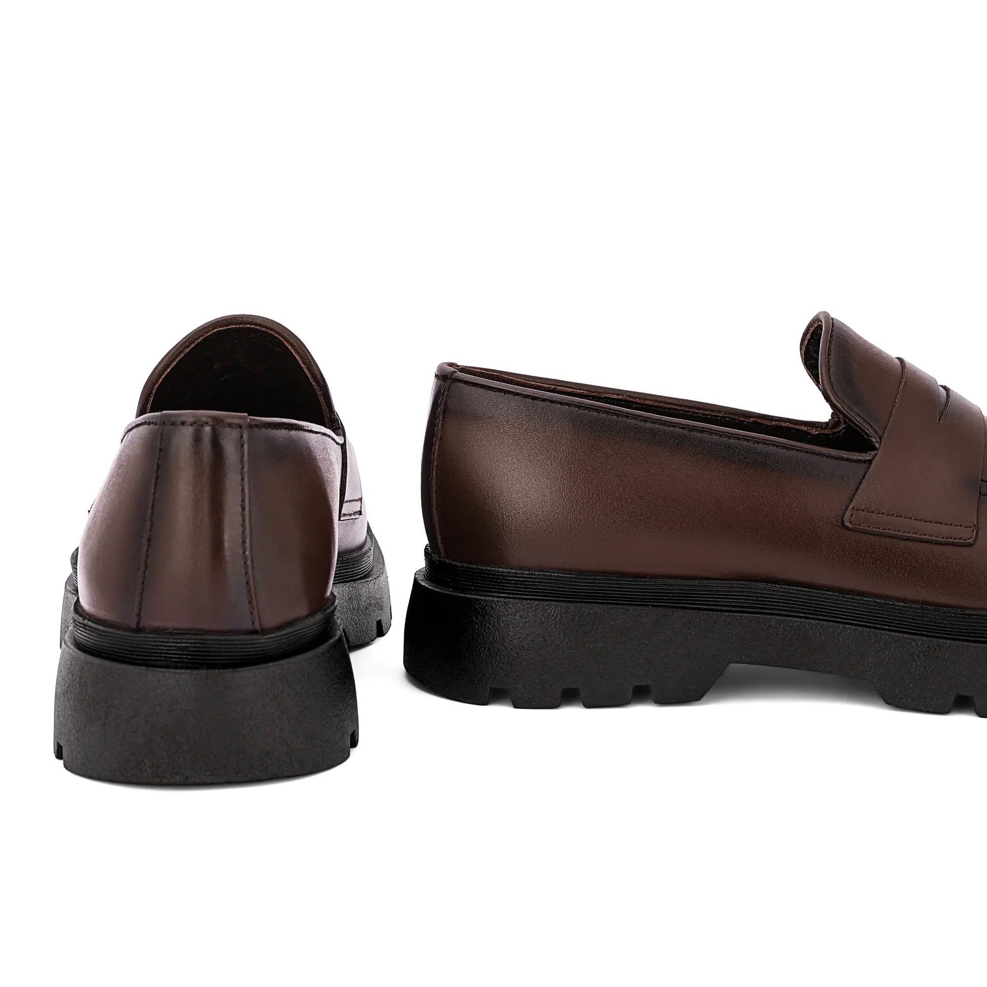 Beyond its stylish appeal, the chunky sole provides excellent stability and shock absorption, ensuring confidence and comfort with every step. For those who seek a shoe that combines bold character with everyday practicality, the Brio Urban Chunk Loafer – Brown is the ideal choice.