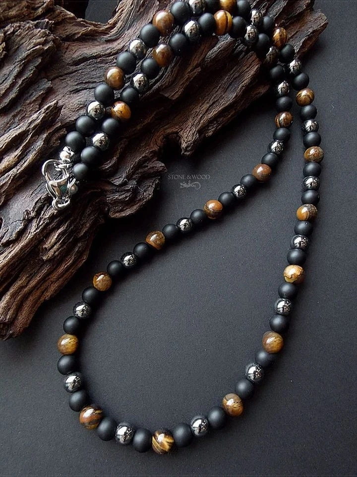 حجر عين النمر الافغاني الاصلي مع فواصل هيماتيت وحجر الاونكس المط
