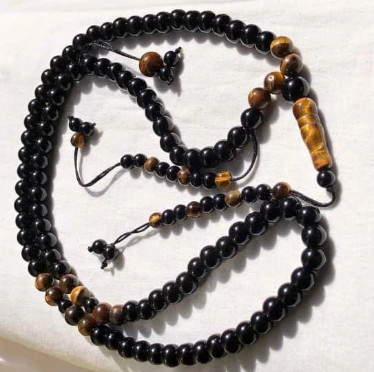 سبحه حجر الاونكس اللميع ٣ عدادات مع حجر عين النمر الافغاني الاصلي ومدنه من عين النمر قطعه مميزه جدا١٠٠حبايا ٨مللي