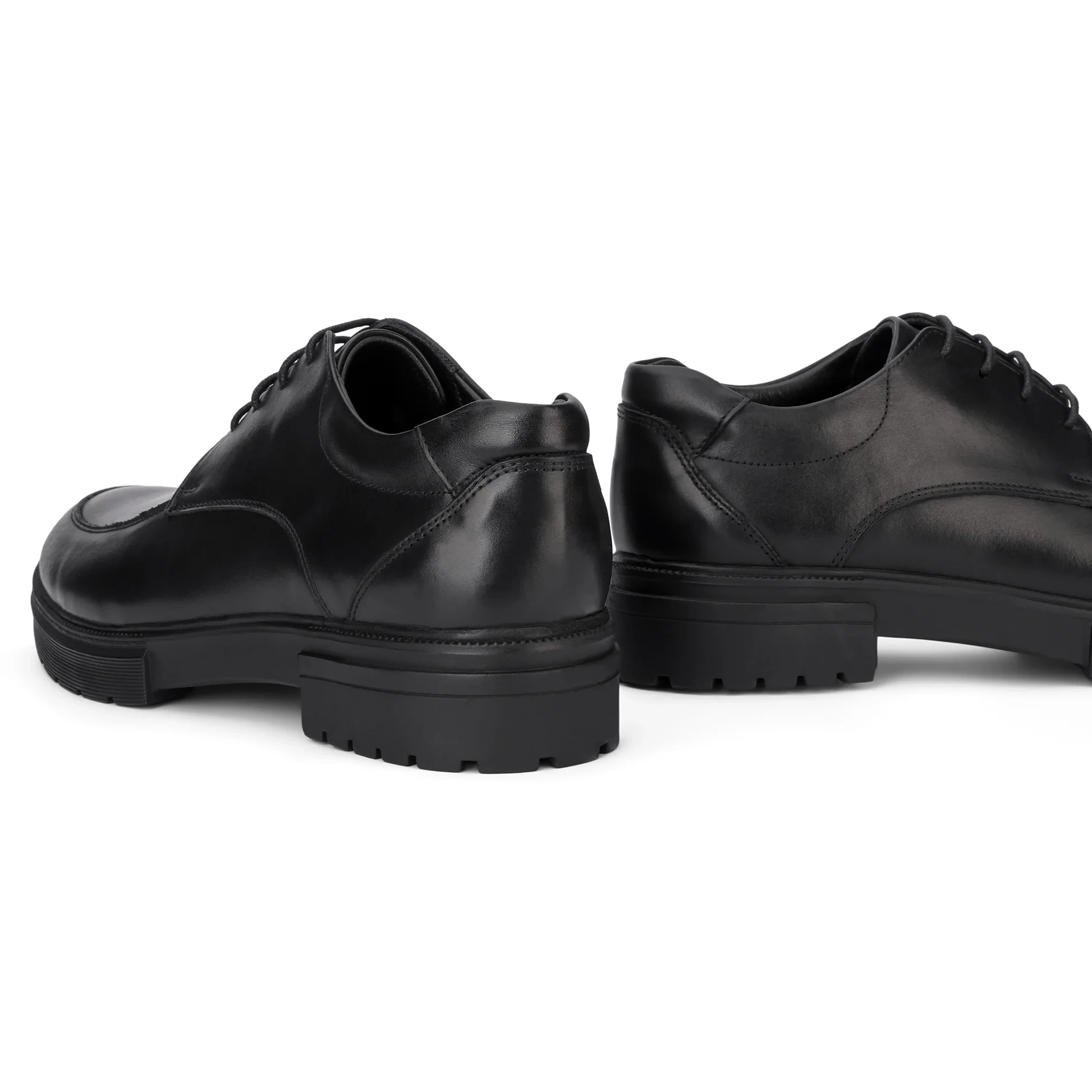 Elevate your formal look with the Black Natural Leather Derby Shoe with a square toe, designed to combine classic elegance with a modern contemporary touch. Its square-toe design offers a sleek, balanced appearance with clean lines that add a distinguished look to any formal or office outfit.