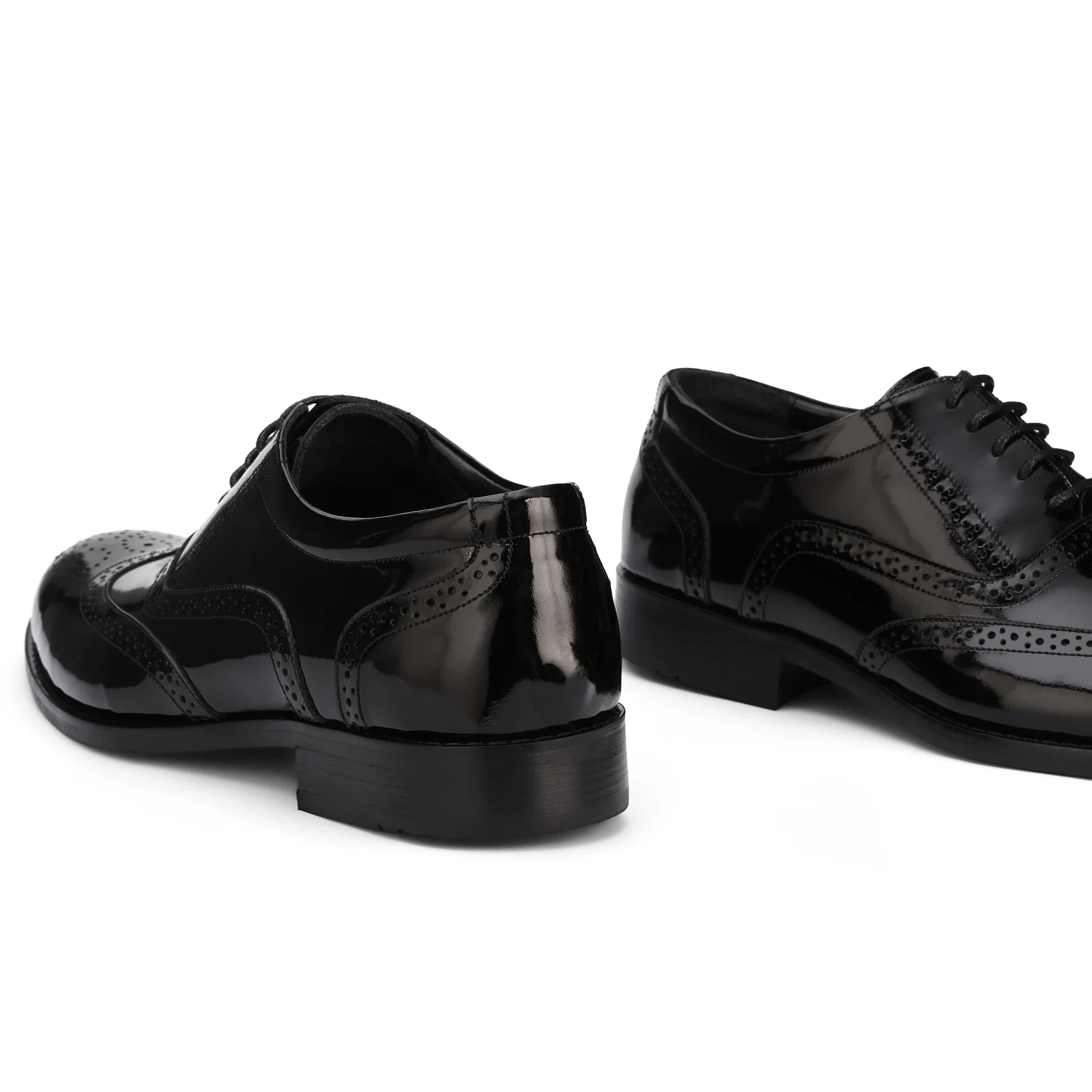 Elevate your formal style with the Gloss Oxford Brogue Shoes in black, designed to combine classic luxury with modern elegance. These shoes feature precise brogue detailing and fine stitching that add a sophisticated, European-inspired touch while maintaining a contemporary edge suitable for both formal and smart-casual occasions.