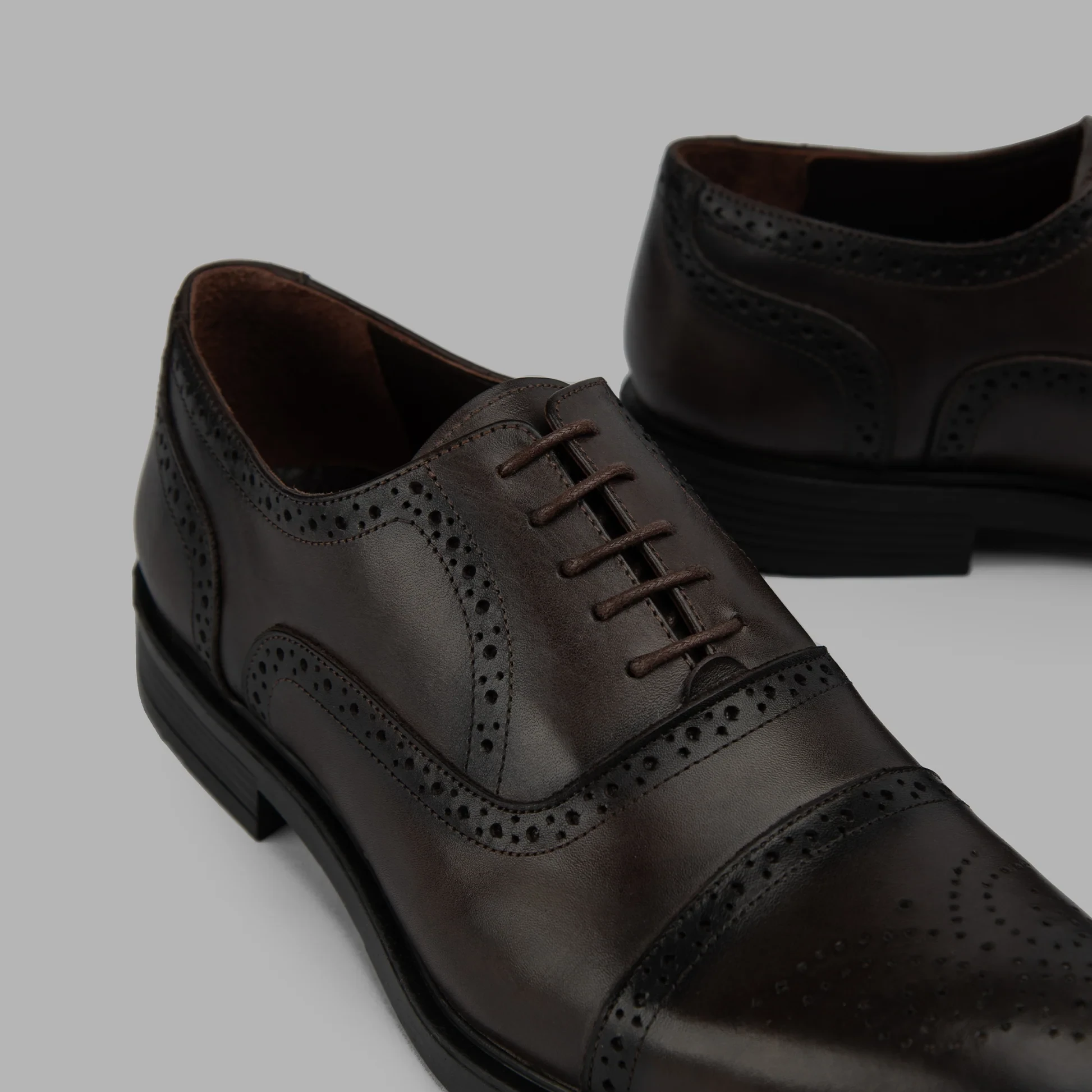 Our BRIO Genuine Leather Oxford Moc Toe Semi Brogue Shoes are the perfect combination of classic formal style and luxury. Made with genuine leather and a classic Oxford design, these impressive brown shoes will be sure to make you stand out for any occasion.