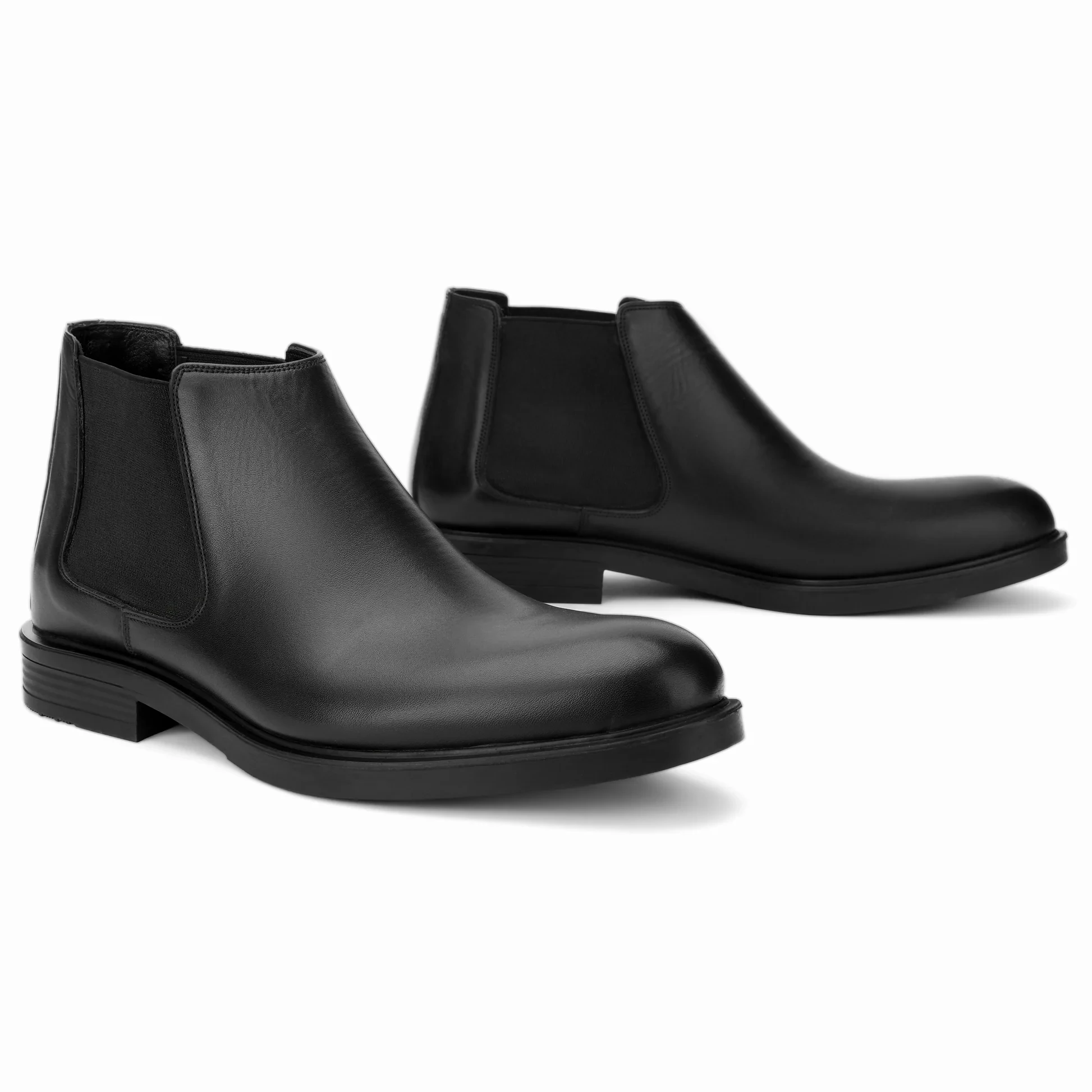 Crafted from premium genuine leather, they offer a luxurious texture and long-lasting durability. The classic black color ensures effortless styling, pairing perfectly with tailored suits, business wear, or modern denim looks. Elastic side panels allow for easy slip-on access while providing a secure and comfortable fit throughout the day.