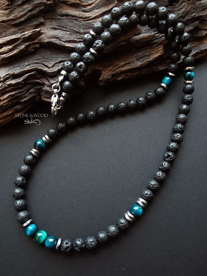 سلاسل من حجر الاونكس المط واللميع مع فواصل الهيماتيت واحجار عين النمر الملونه النادره