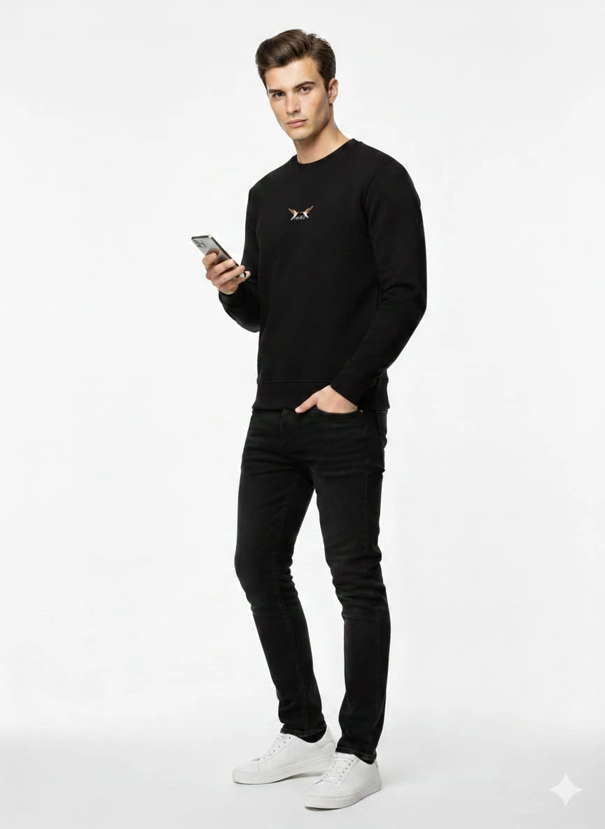 The crew neck and ribbed trims help maintain its Regular Fit shape even with frequent wear. A versatile piece that pairs effortlessly with dark jeans or refined joggers for a confident, contemporary look.
